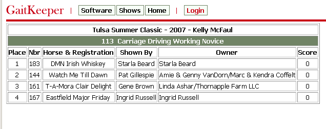 Gene Brown, whip. My pretty pretty girl. This is T-A-Mora Clair Delight (Hi-Fi Eben Moro x Aquila's Total Devotion) in her ribbons and roses at Tulsa Classic, Champion in Carriage Division Novice. Clair is 4 years old and this was her first appearance in harness. She is our very first Morgan baby of our breeding after the Morgan bug bit us 6 years ago, so she is very special to us for many reasons. |