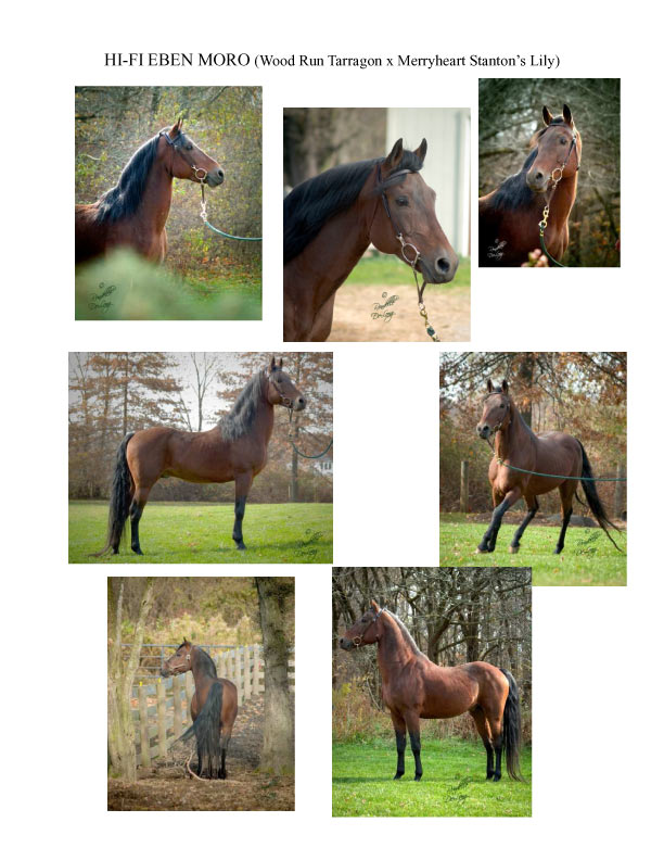 Here is one stop shopping for the discriminating breeder. If you are looking for superb disposition, type, beauty, stamina, and sport talent, in a stallion that produces himself, only better, you have found it in Hi-Fi Eben Moro. “Ben” preserves a rare sire line to Dyberry Bob and Meredith Bruce in combination with the outstanding sport champion, Royalton Ashline.